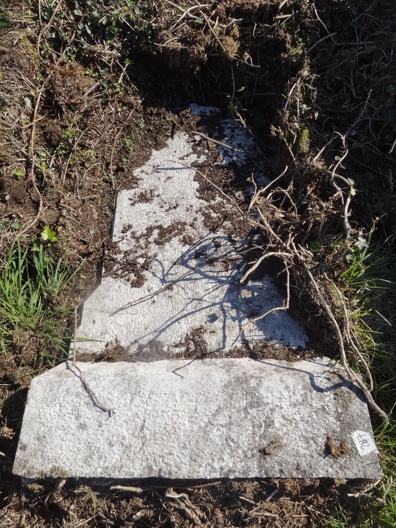 Headstone lying face down
