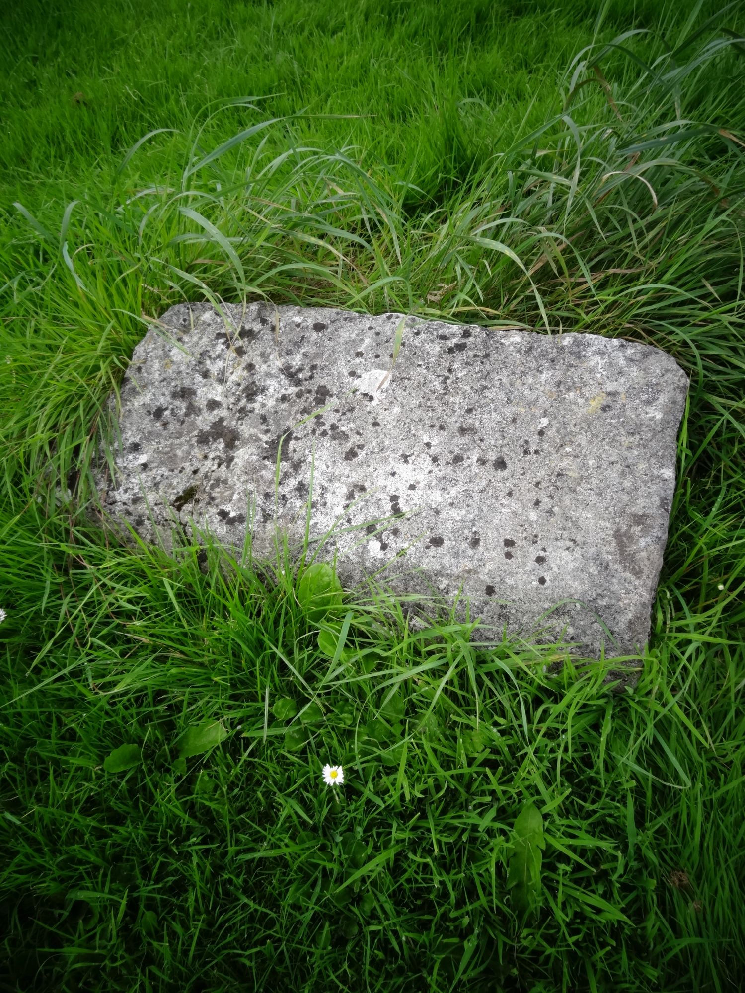 stone possibly from church, worked stone, architectural fragment reused as a grave marker