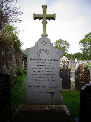 Erected byMargaret Quilty (Keating)of Cappamorein memory of her beloved husbandMichael Quiltywho departed this life on the 26th May 1881at the age of 28 yearsMay his soul rest in peace Amenalso her three children