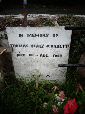 In Memory ofThomas Healy (Corbet)Died 28-Aug-1986R.I.PErected by his friendsĀ (p.s known as Lardy Corbet )