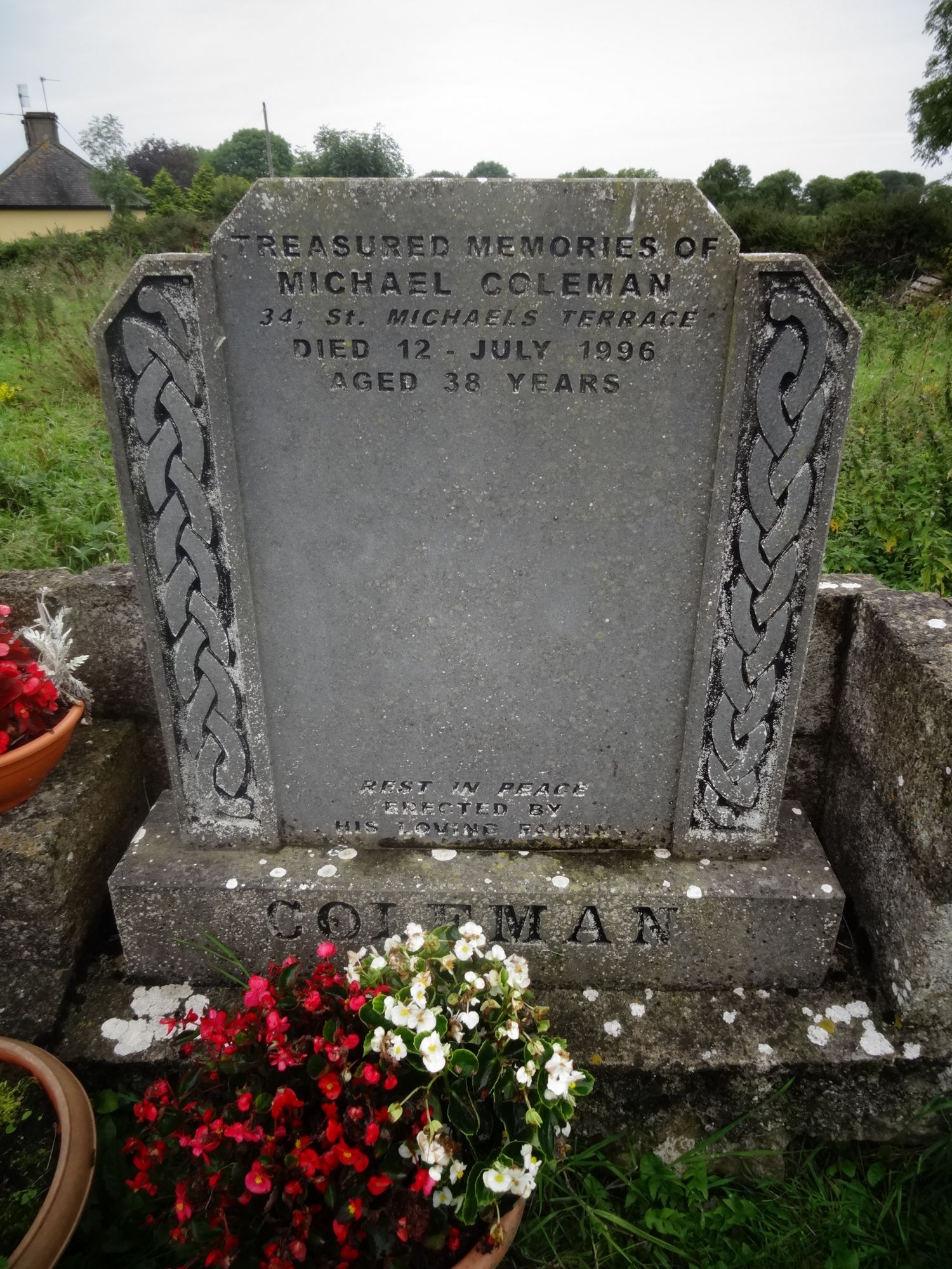 Treasured memories of Michael Coleman34 St Michael's Terracedied 12 July 1996aged 38 yearsRest in PeaceErected by his loving familyColeman