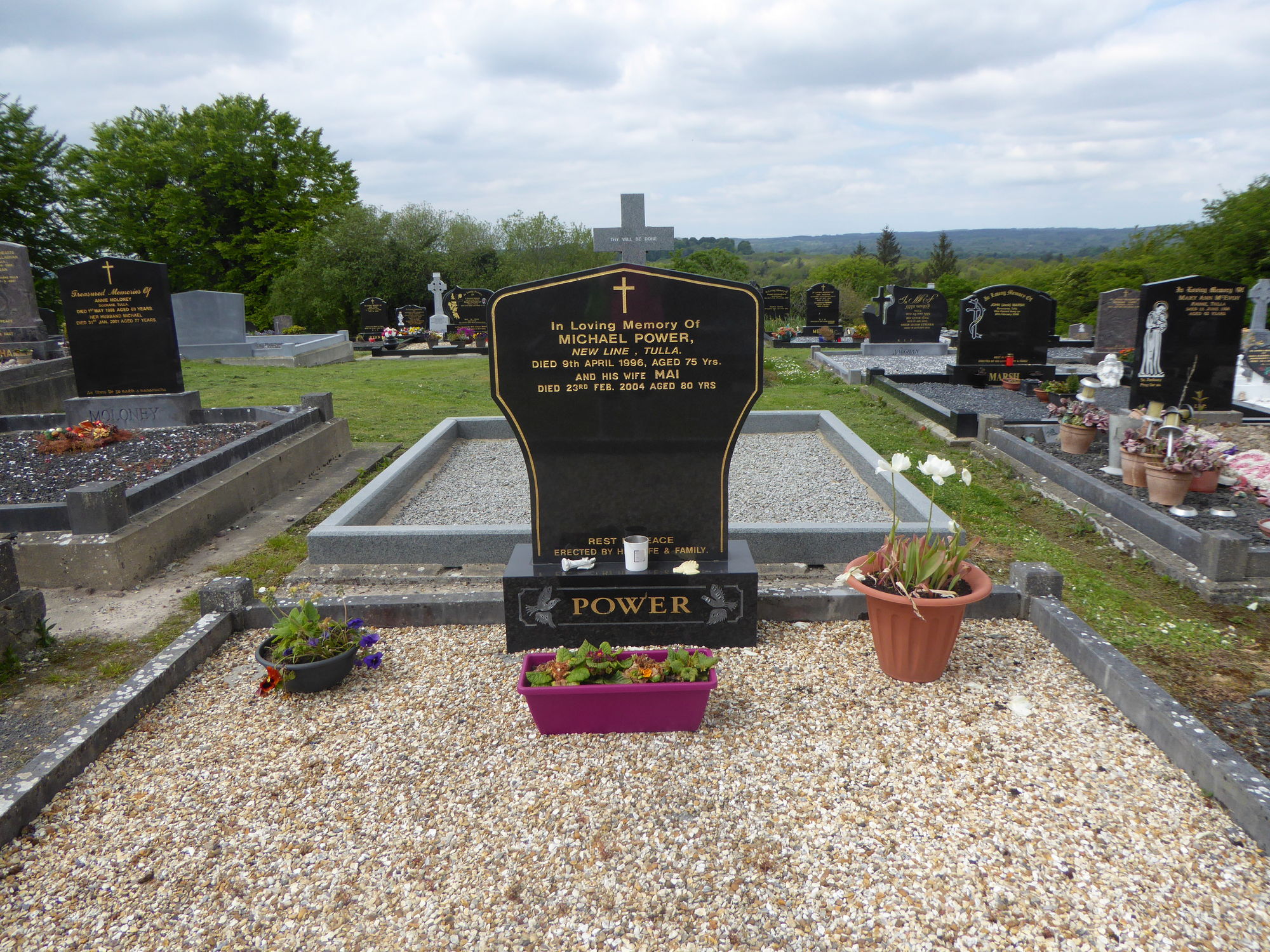 In loving memory ofMichael PowerNew Line, Tulladied 9th April 1996 aged 75 yrsAnd his wife Maidied 23rd Feb 2004 aged 80 yrs